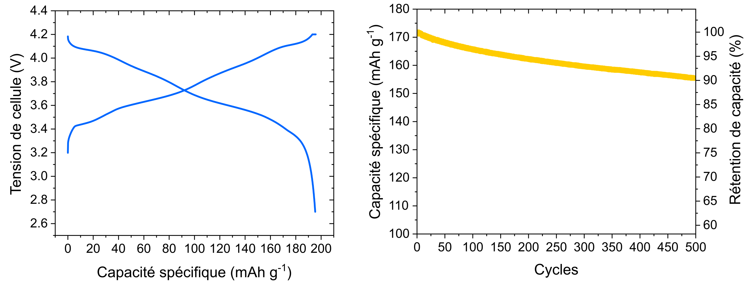 These performances can vary according to experimental conditions (e.g. ambient temperature or pressure applied to the cell), battery format (button cell or pocket cell), component dimensions (electrode weight and porosity, electrolyte type and quantity, etc.), and battery manufacturing quality (from electrode or electrolyte manufacture to cell assembly).