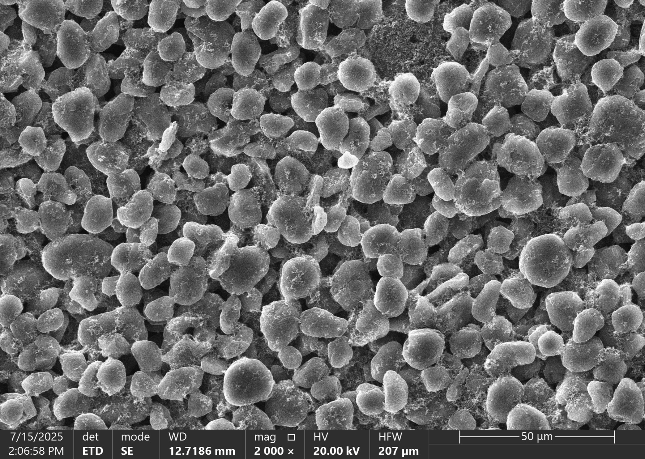 Observation au MEB d'une électrode négative de graphite